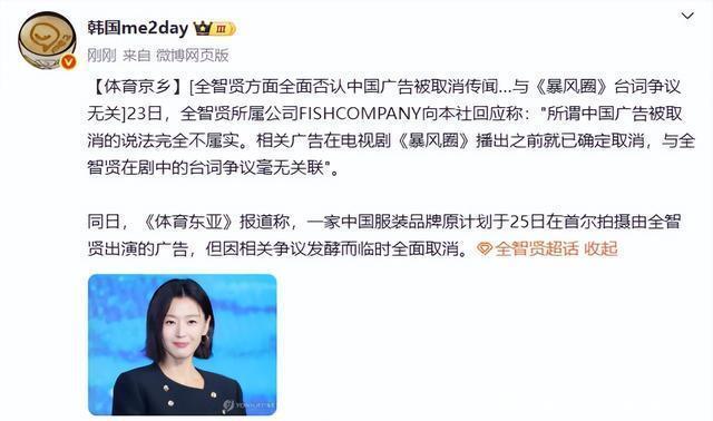 全智贤方首发声回应,否认中国广告被取消,网友吐槽:死鸭子嘴硬